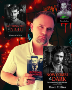 I WANT to welcome author Thom Collins to the Blog. His work weaves thriller-style tension beautifully with gay romance; the growing attraction between his male protagonists is never a side narrative but central to the danger surrounding his protagonists, shaping the emotional core of the story and intensifying its suspense.